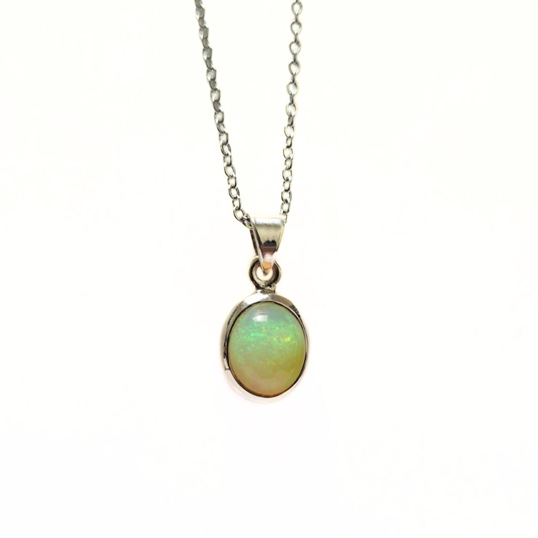 Adorn yourself with the vibrant hues of our Ethiopian opal silver pendant. This exquisite piece showcases the unique play of color that Ethiopian opals are renowned for.