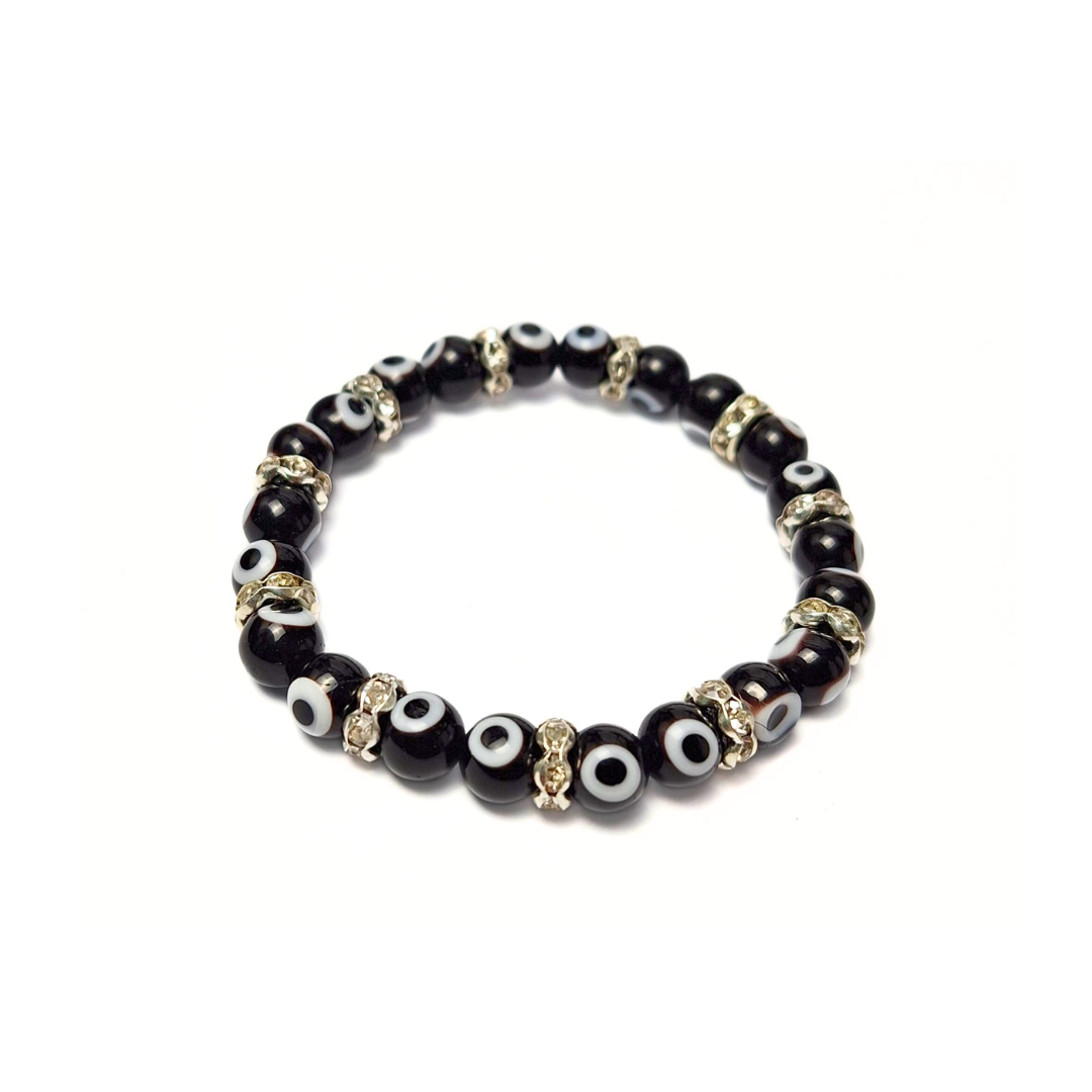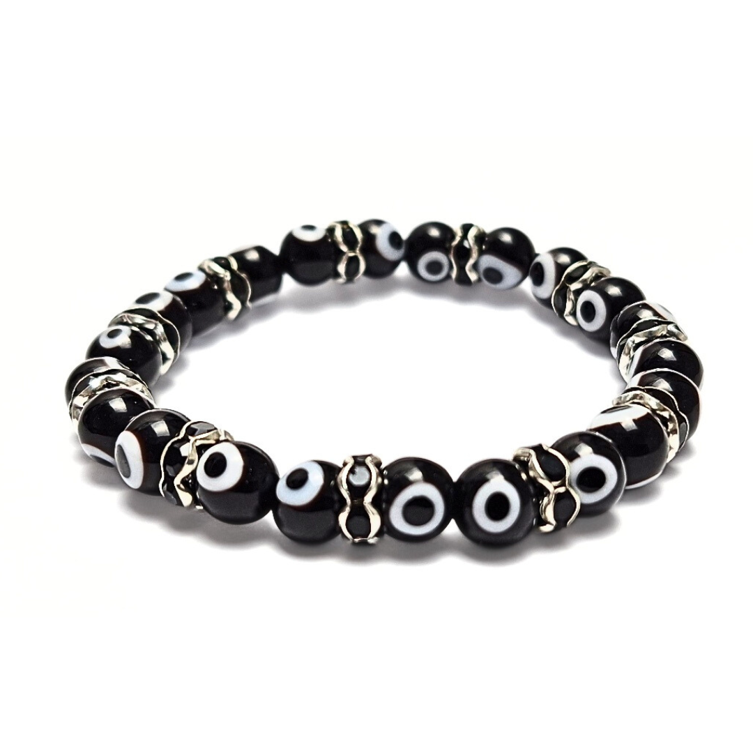 Safeguard your energy with the Black Evil Eye Glass Bracelet. This sleek, 8mm glass-beaded accessory is specifically designed to deflect negativity while providing deep grounding. Because the “Evil Eye” is a universal symbol for “good luck” and spiritual shielding, this flexible elastic bracelet with mixed metal spacers acts as a powerful daily anchor for staying centered and keeping your personal field protected.