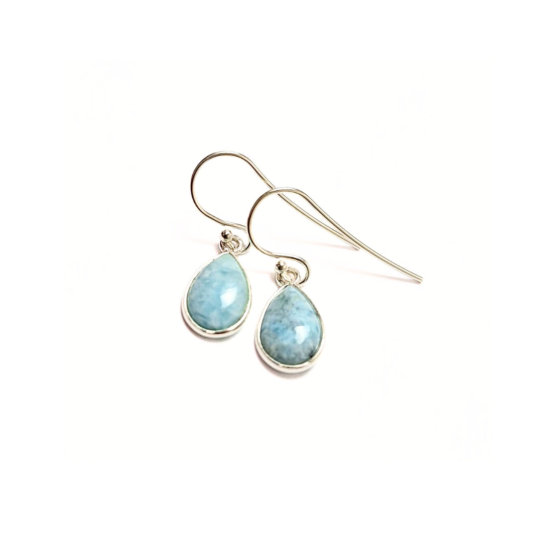 Discover the serene beauty of our Larimar silver earrings. This unique gemstone, found exclusively in the Dominican Republic, is known for its soothing blue hues and is believed to promote peace and tranquility.