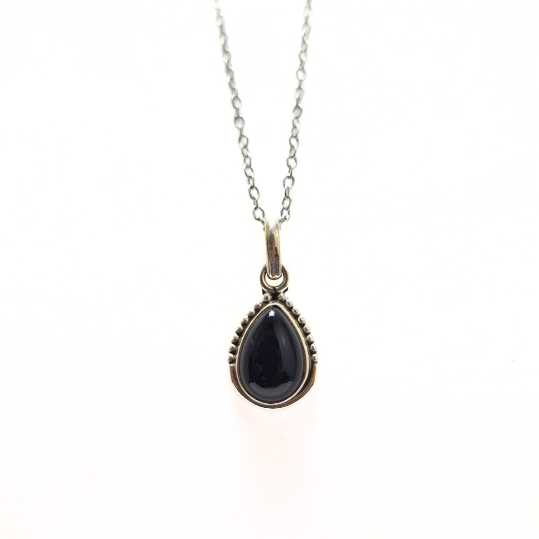Onyx Pear Pendant |Silver