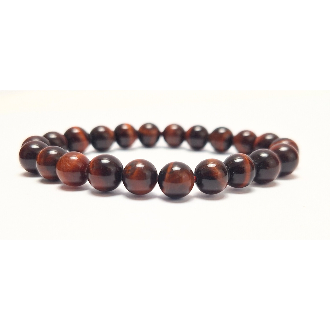 Natural Red Tiger’s Eye | 8mm Polished Rounds | High-Strength Elastic | Pure Fortitude
