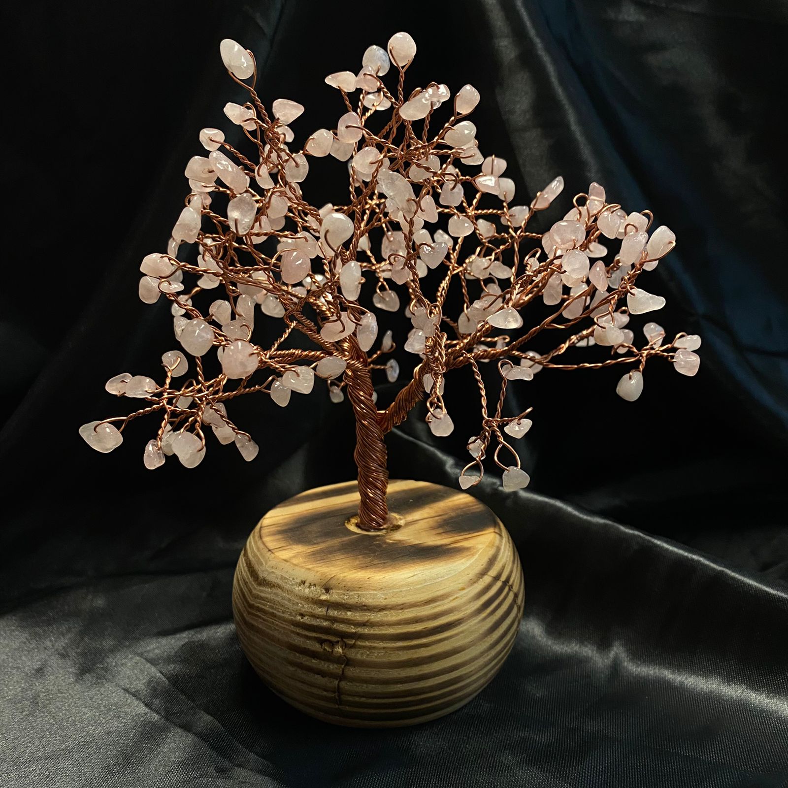 Transform the energy of your living space with our Rose Quartz Gemstone Tree. In Feng Shui, trees represent the wood element—a powerful force connected to kindness, flexibility, and growth. This beautiful artisan piece features 200 genuine Rose Quartz beads hand-twisted onto flexible copper wire, rooted firmly into a natural pine wood base. Because it mimics a tree bearing fruit, it symbolizes things “coming to fruition,” inviting an abundance mindset that encourages sharing and deep emotional nourishment.