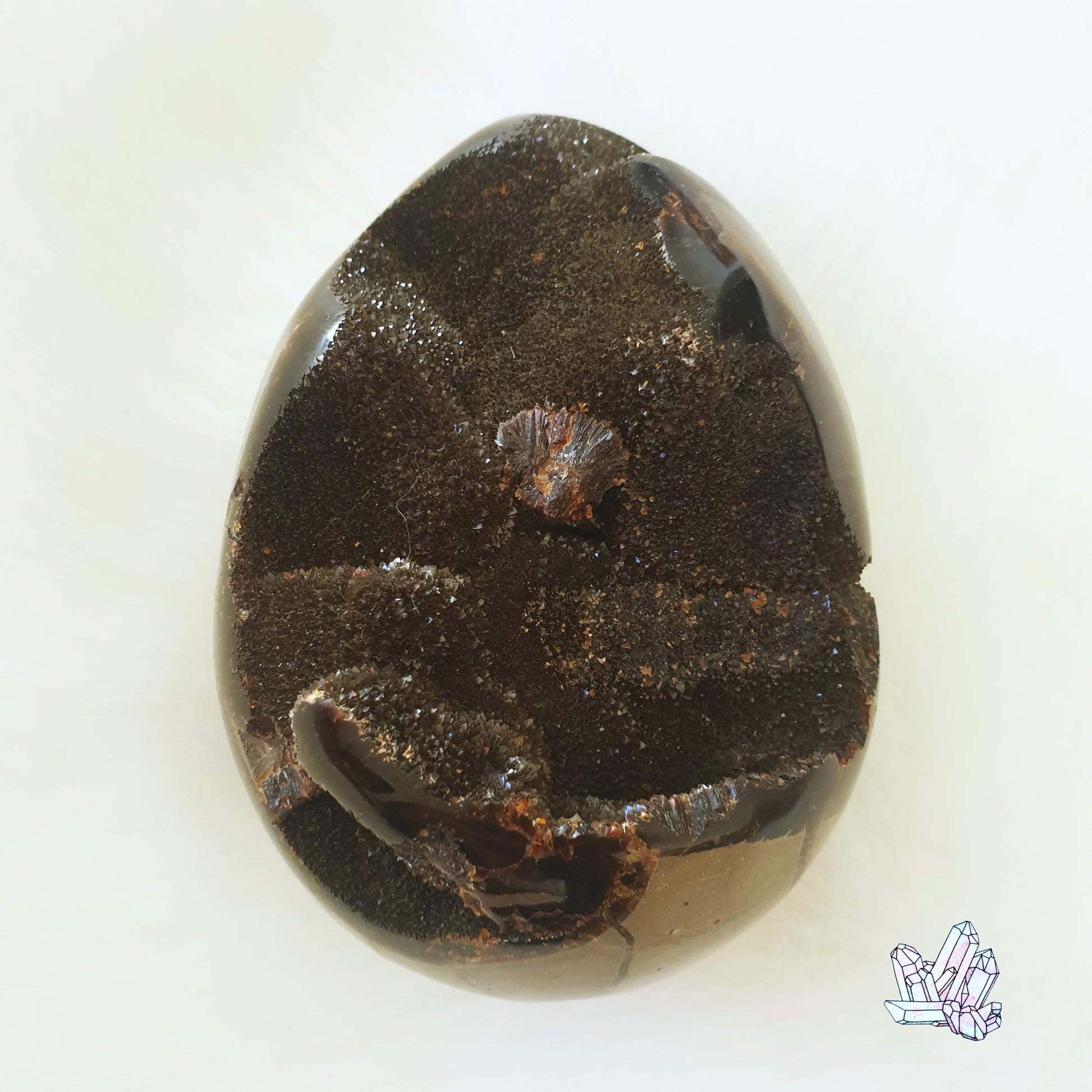 The Septarian Dragon Egg is a protective stone that provides grounding and shielding of the physical, mental and emotional bodies.