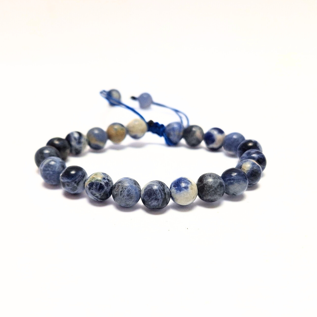 Calm the chatter of a busy mind and connect with your inner truth using our Sodalite Macrame Bracelet. Sodalite is instantly recognizable by its deep, royal blue color mottled with white calcite veins, reminiscent of a stormy midnight sky. Known as a stone of the intellect, it bridges the gap between thoughts and feelings. The hand-woven nylon cord provides a comfortable, rugged fit, making it an ideal companion for those who seek to lead with logic and calm confidence.