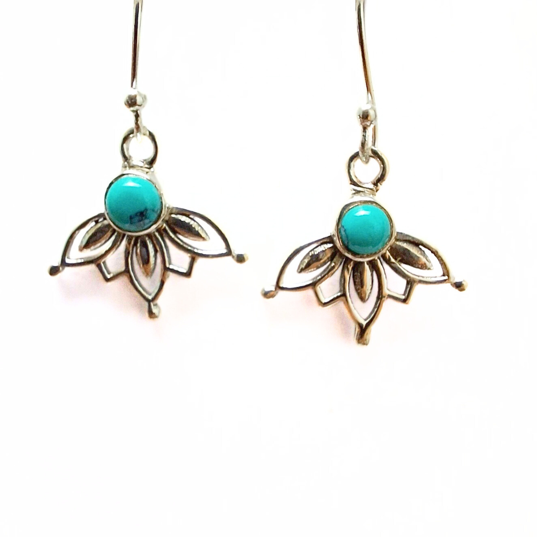 Discover the timeless beauty of our turquoise silver earrings. This vibrant blue gemstone is known for its healing properties and is often associated with protection and communication.